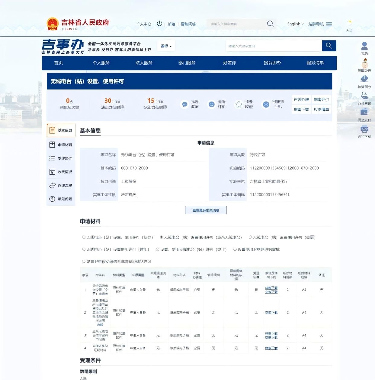 | 吉林省无线电台(站)设置、使用许可申请步骤 |